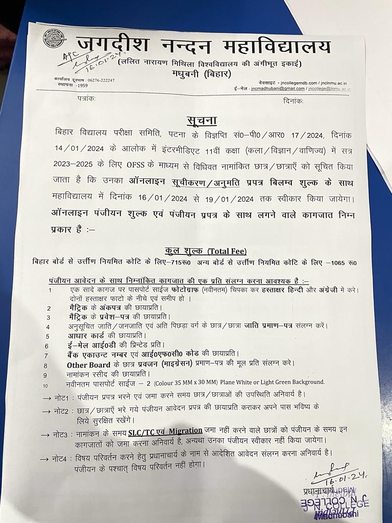 NOTICE REGARDING INTERMEDIATE REGISTRATION (2023-25) WITH LATE FINE